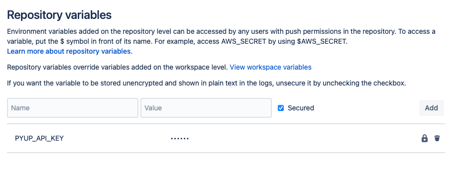 - safety --key $SAFETY_API_KEY --stage cicd scanFinal Step: Add your Safety API Key as a BitBucket repository variable