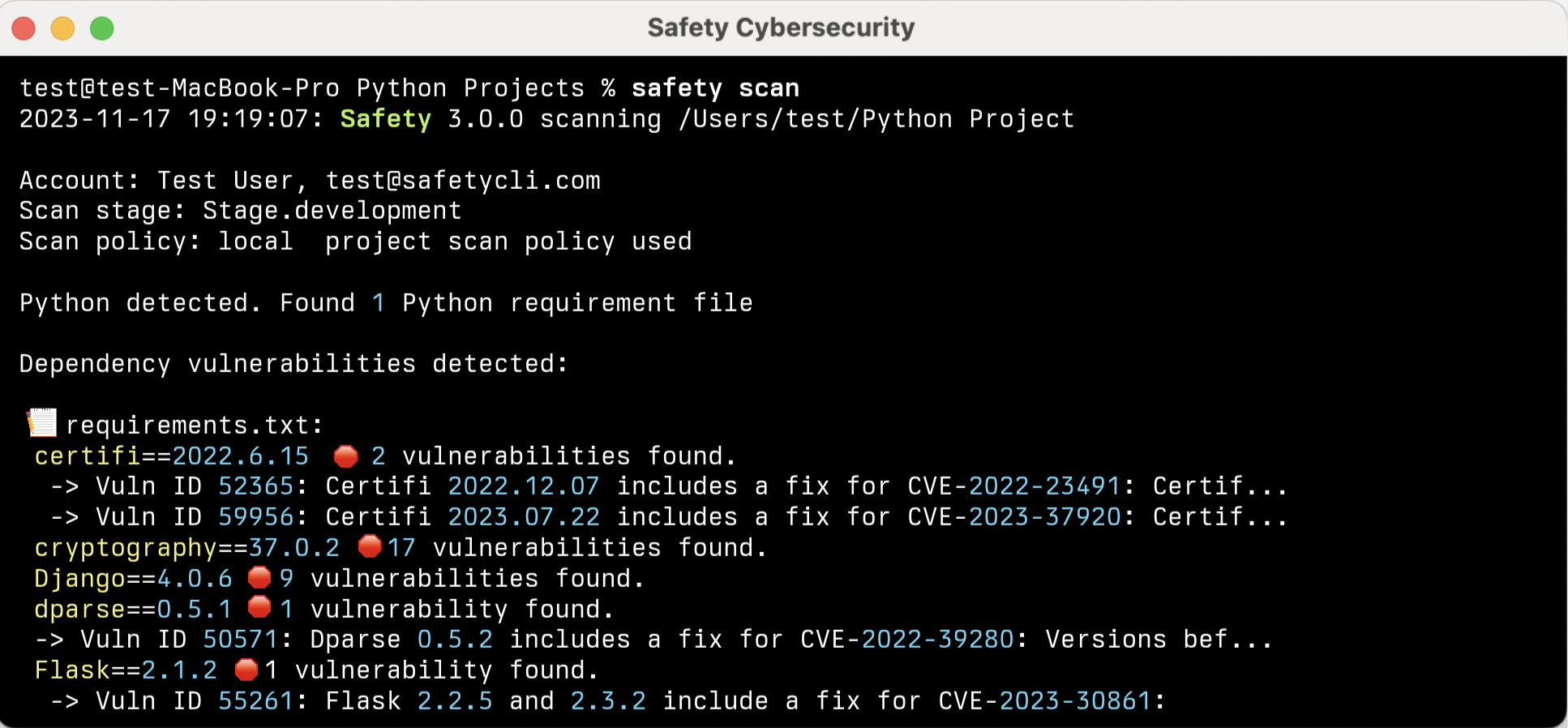 Leveraging the industry's most comprehensive database of vulnerabilities and malicious packages, Safety CLI Scanner allows teams to detect vulnerabilities at every stage of the software development lifecycle.